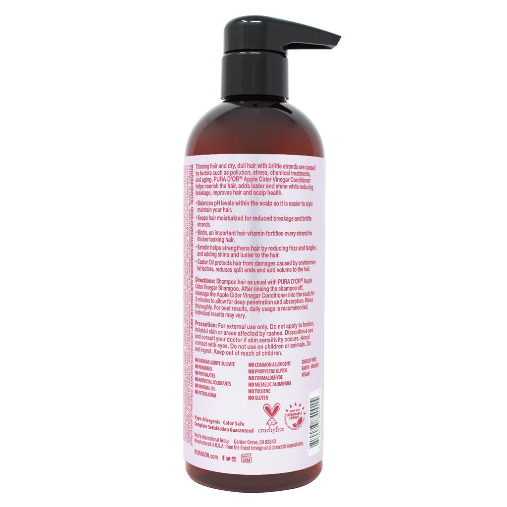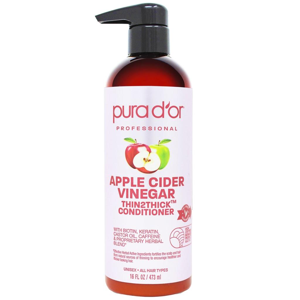 PURA D’OR Apple Cider Vinegar Conditioner is here to wholesomely and harmoniously provide a deep cleanse to your hair and scalp from all dirt, buildup, and residue causing dryness, itching, flakes, or even thinning hair. Apple Cider Vinegar is known to exfoliate the hair and scalp while locking in hydration within the hair follicles to support a healthier, more moisturized scalp environment for shinier and stronger hair. The potent botanical blend of Biotin, Castor Oil and other Key Active Ingredients encourages a reduction in thinning hair. Keratin and Caffeine strengthens the hair to its roots for silkier, shinier, softer strands.
