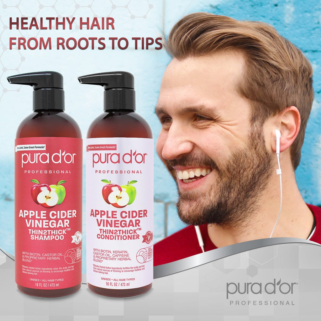 PURA D’OR Apple Cider Vinegar Shampoo and Conditioner Set is the best ACV shampoo and conditioner on the market in part due to our company's mission to only deliver products made with the best botanical ingredients found on Earth. Our Apple Cider Vinegar Shampoo's clarifying & cleansing properties naturally help remove buildup, residue, and dirt. Our ACV Conditioner encourages exfoliation to the hair and scalp while locking in hydration within the hair follicles to support a healthier, more moisturized scalp environment for shinier and stronger hair.