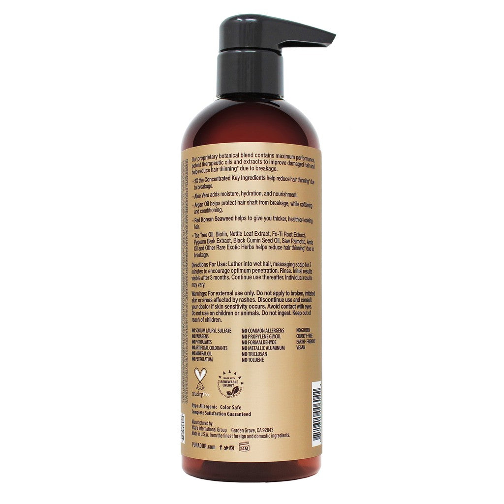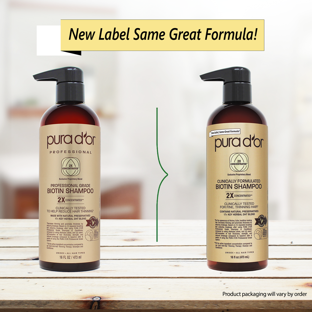 *For the appearance of thicker, fuller, healthier-looking hair. Decreases thinning and promotes thickness by reducing breakage. Based on (1) repeated brushing test analyzing breakage after using PURA D’OR Shampoo & Conditioner compared to using shampoo alone, and (2) users’ self-evaluation of hair thickness, strength, and reduced breakage compared to baseline after 8 weeks of using the PURA D’OR Shampoo & Conditioner System.