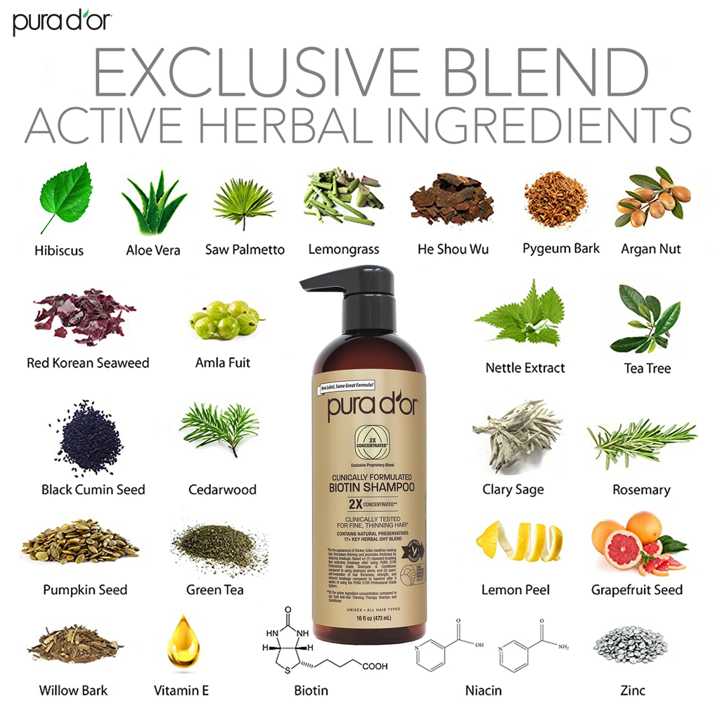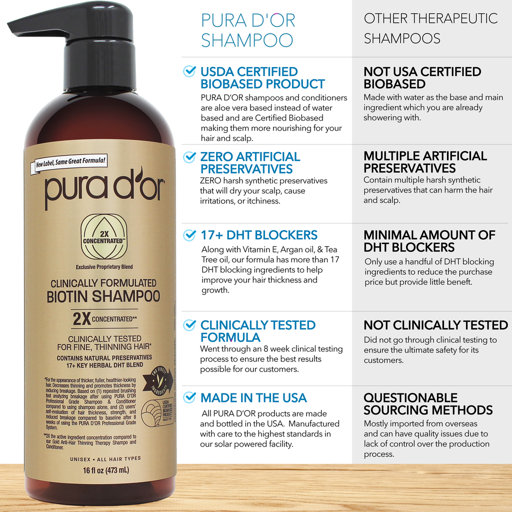 PURA D'OR Anti-Thinning Biotin Shampoo & Deep Moisturizing Conditioner Original Gold Label Set (16oz x2) Natural Earthy Scent, CLINICALLY TESTED Effective Results, DHT Blocker Thickening, Women & Men 16 oz