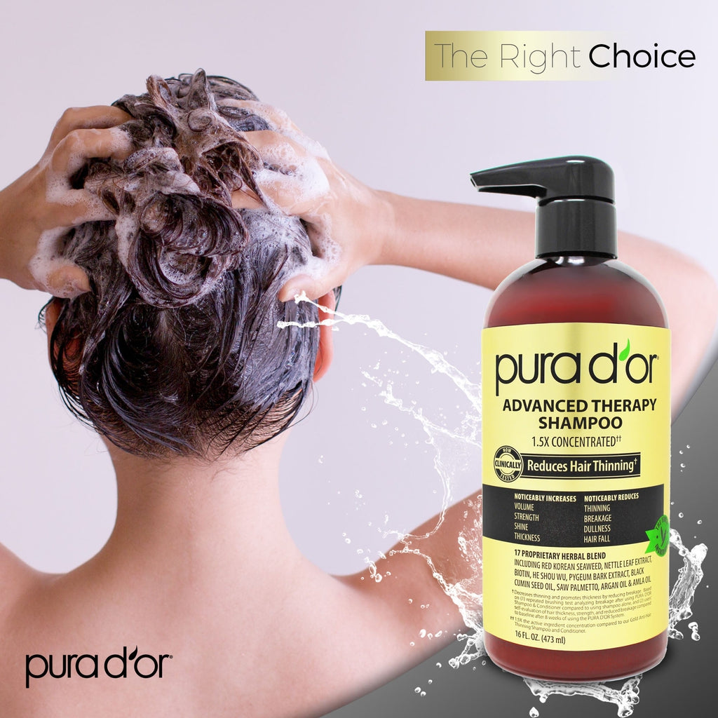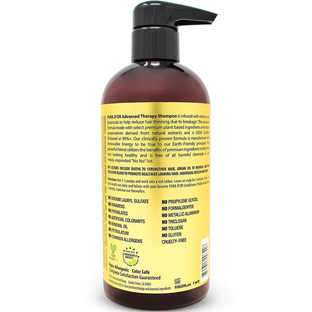 PURA D'OR Anti-Thinning Biotin Shampoo & Deep Moisturizing Conditioner Original Gold Label Set (16oz x2) Natural Earthy Scent, CLINICALLY TESTED Effective Results, DHT Blocker Thickening, Women & Men 16 oz
