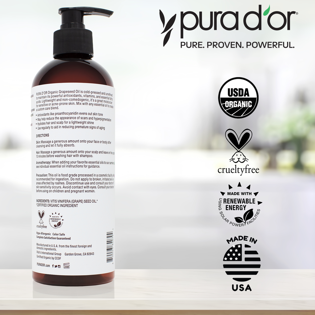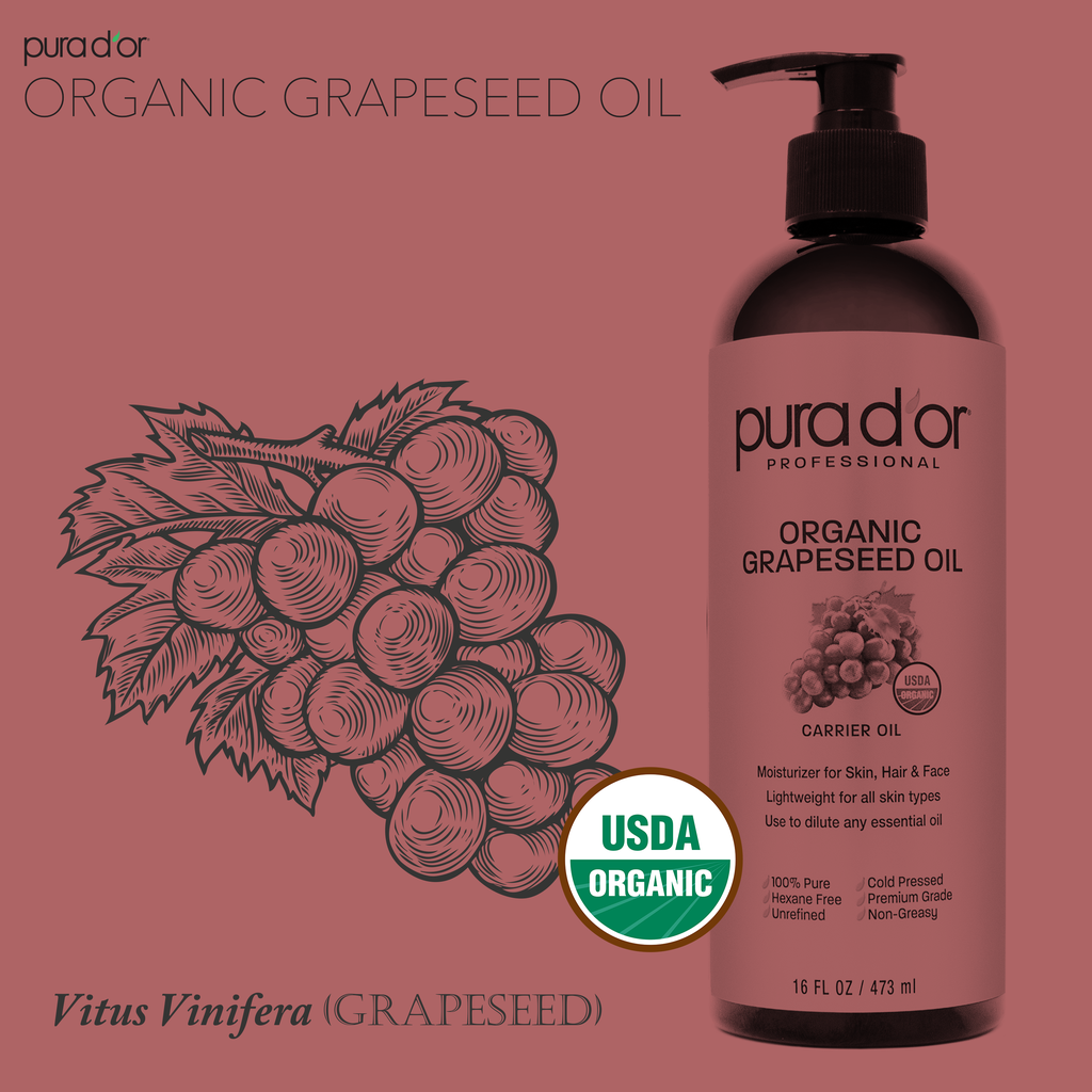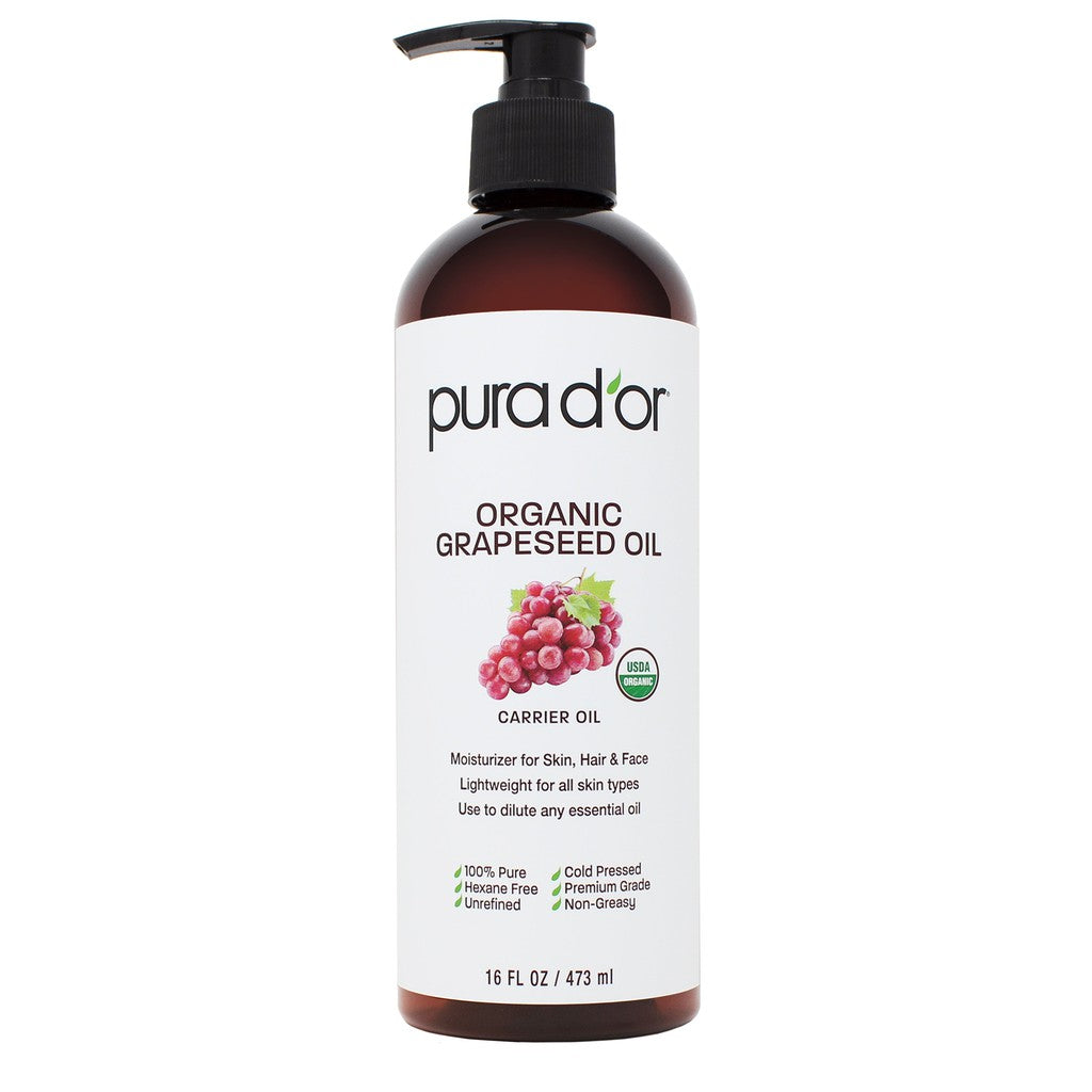 PURA D’OR Organic Grapeseed Oil is cold-pressed and unrefined to maintain its powerful antioxidants, vitamins, and essential fatty acids. Lightweight and non-comedogenic, it’s a great moisturizer for sensitive or acne-prone skin. Mix with any essential oil to create a custom care blend.