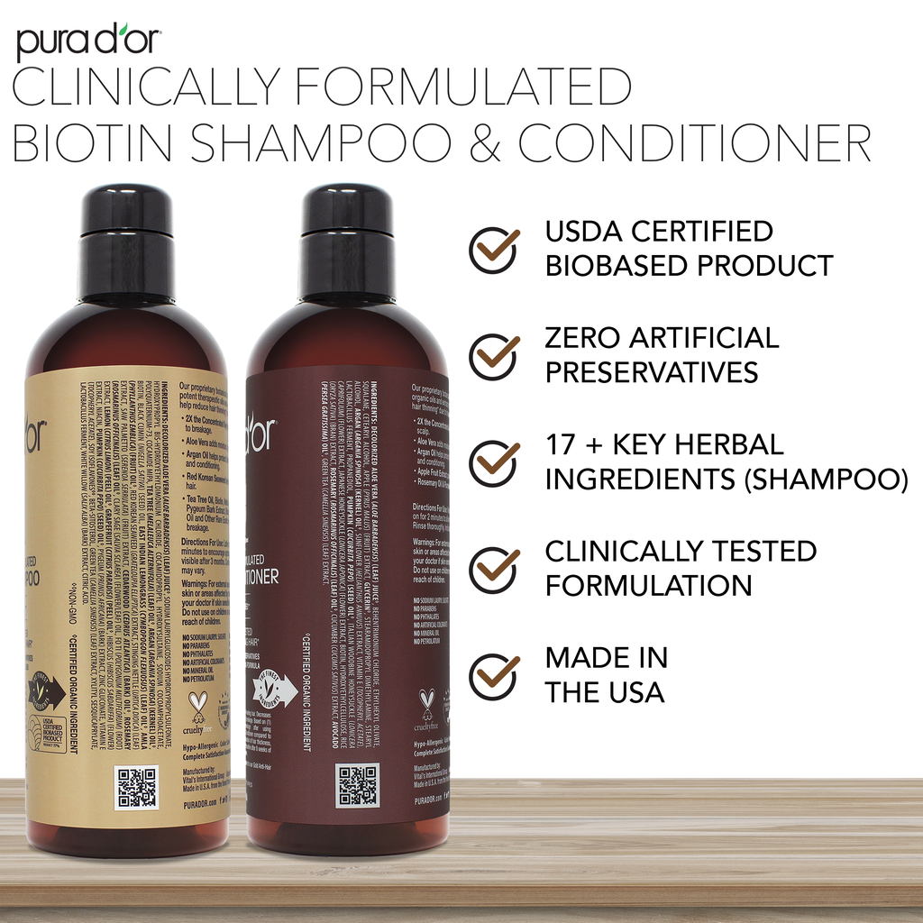PURA D'OR Anti-Thinning Biotin Shampoo & Deep Moisturizing Conditioner Original Gold Label Set (16oz x2) Natural Earthy Scent, CLINICALLY TESTED Effective Results, DHT Blocker Thickening, Women & Men 16 oz