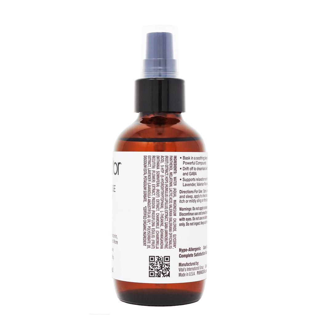 Water (Aqua), Magnesium Chloride, Glycerin*, Panthenol, Melatonin, Lactic Acid, Valerian (Valeriana Officinalis) (Root) Extract, Hops (Humulus Lupulus) Extract, Gaba (Aminobutyric Acid), 5-Htp (5-Hydroxytryptophan), L-Theanine, Ashwagandha (Withania Somnifera) (Root) Extract, Chamomile (Chamomilla Recutita) (Flower) Extract, Passion (Passiflora Edulis) (Fruit) Extract, Lavender (Lavandula Angustifolia) Oil*, Polysorbate 20, Disodium EDTA, Potassium Sorbate. *Certified Organic Ingredient